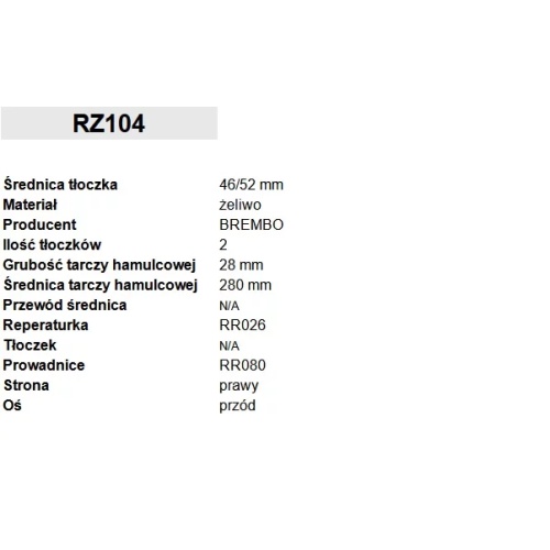 prawy, przód - średnica tłoczka 46/52mm | System hamulcowy: BREMBO